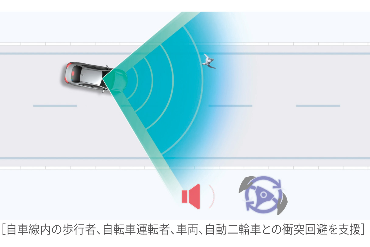 後方車両から追突される可能性が高い場合、ハザードランプを高速点滅させて後方車両に注意喚起します。それにより、追突事故の被害軽減に貢献します。