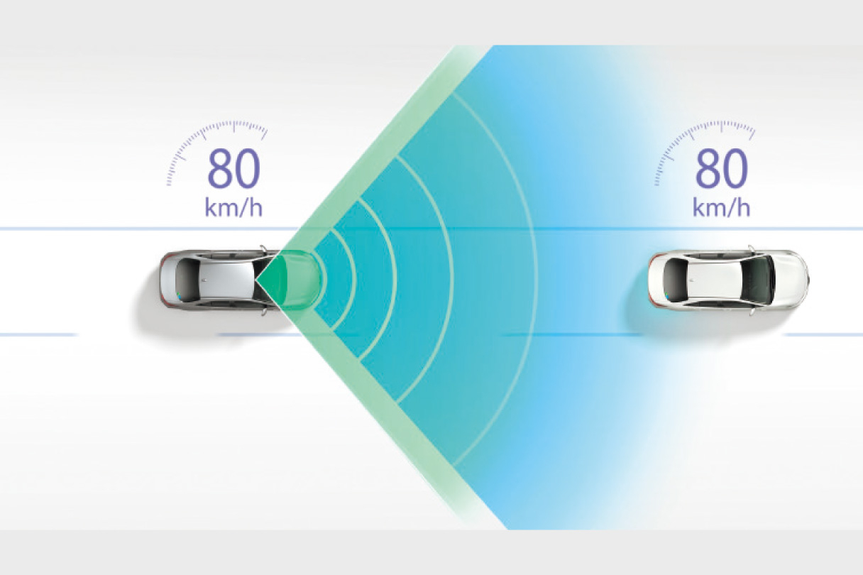 ミリ波レーダーと単眼カメラで先行車を認識し、車速に応じた車間距離を保ちながら追従走行を支援します。先行車が停止した時は自車も停止して停止状態を保持、先行車が発進した時はドライバー操作により発進し、追従走行を再開します。