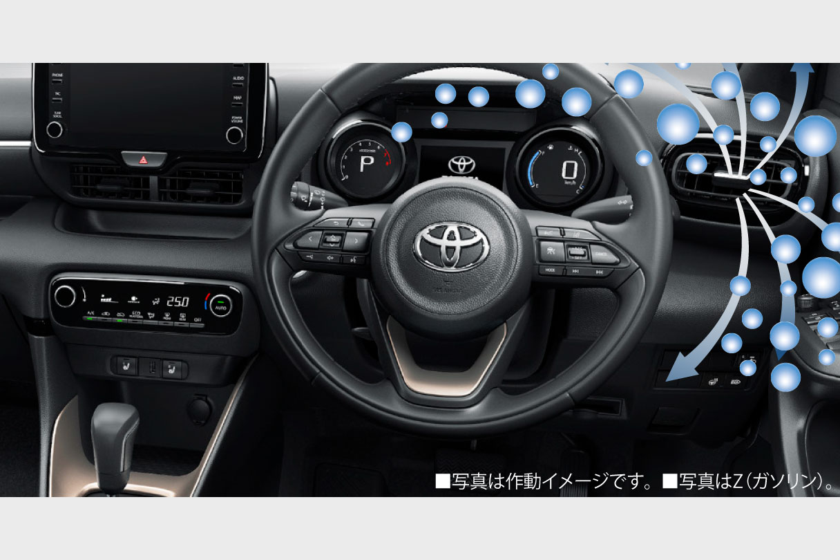 *1. nanoe(ナノイー)=nano-technology + electric最先端のテクノロジーから生まれた“水に包まれている電気を帯びたイオン”のこと。*2. 試験機関:(一財)日本食品分析センター/試験方法:実車において付着したウイルス感染価を測定/抑制の方法:ナノイーを放出/対象:付着したウイルス/試験したウイルスの種類:1種類/試験結果:1時間で99%以上抑制。第20073697001-0101号。報告書日付:2020年12月4日*3. 試験機関:(一財)日本食品分析センター/試験方法:実車において付着した菌数を測定/抑制の方法:ナノイーを放出/対象:付着した菌/試験した菌の種類:1種類/試験結果:1時間で99%以上抑制。第15038623001-0101号。報告書日付:2015年5月12日*4. 試験機関:パナソニック ホールディングス株式会社プロダクト解析センター/試験方法:実車において布に付着させたタバコ臭を6段階臭気強度表示法による検証/脱臭の方法:ナノイーを放出/対象:付着したタバコ臭/試験結果:1時間で臭気強度1.8以上低減。BAA33-150318-M35。 ■nanoe、ナノイー及びnanoeマークは、パナソニック ホールディングス株式会社の商標です。 ■使用環境によってはナノイーの効果が十分に得られない場合があります。