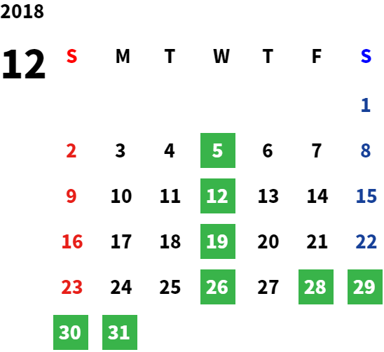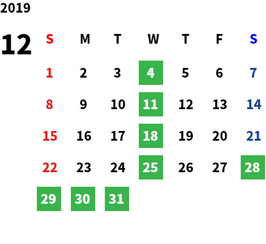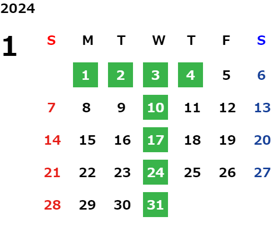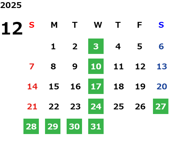2024年12月28日(土) ~ 2025年1月5日(日)まで