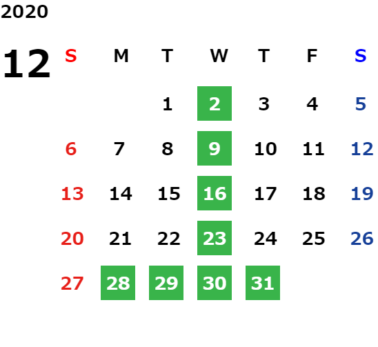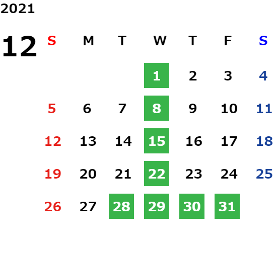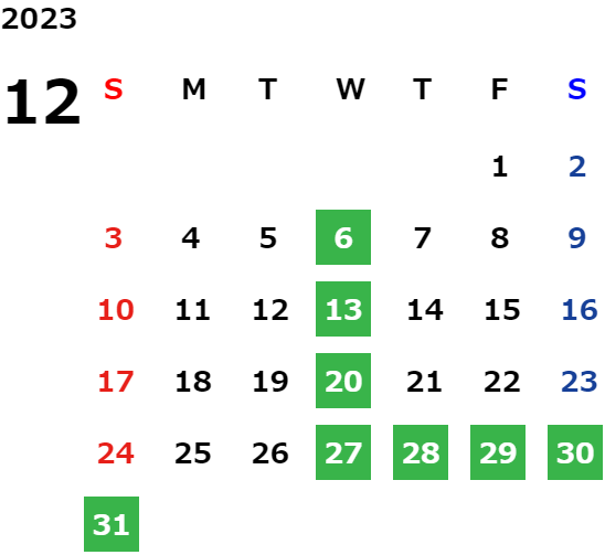 年末年始の休業を以下のとおりとさせていただいております。年始は1月6日(月)10:00より通常営業いたします。